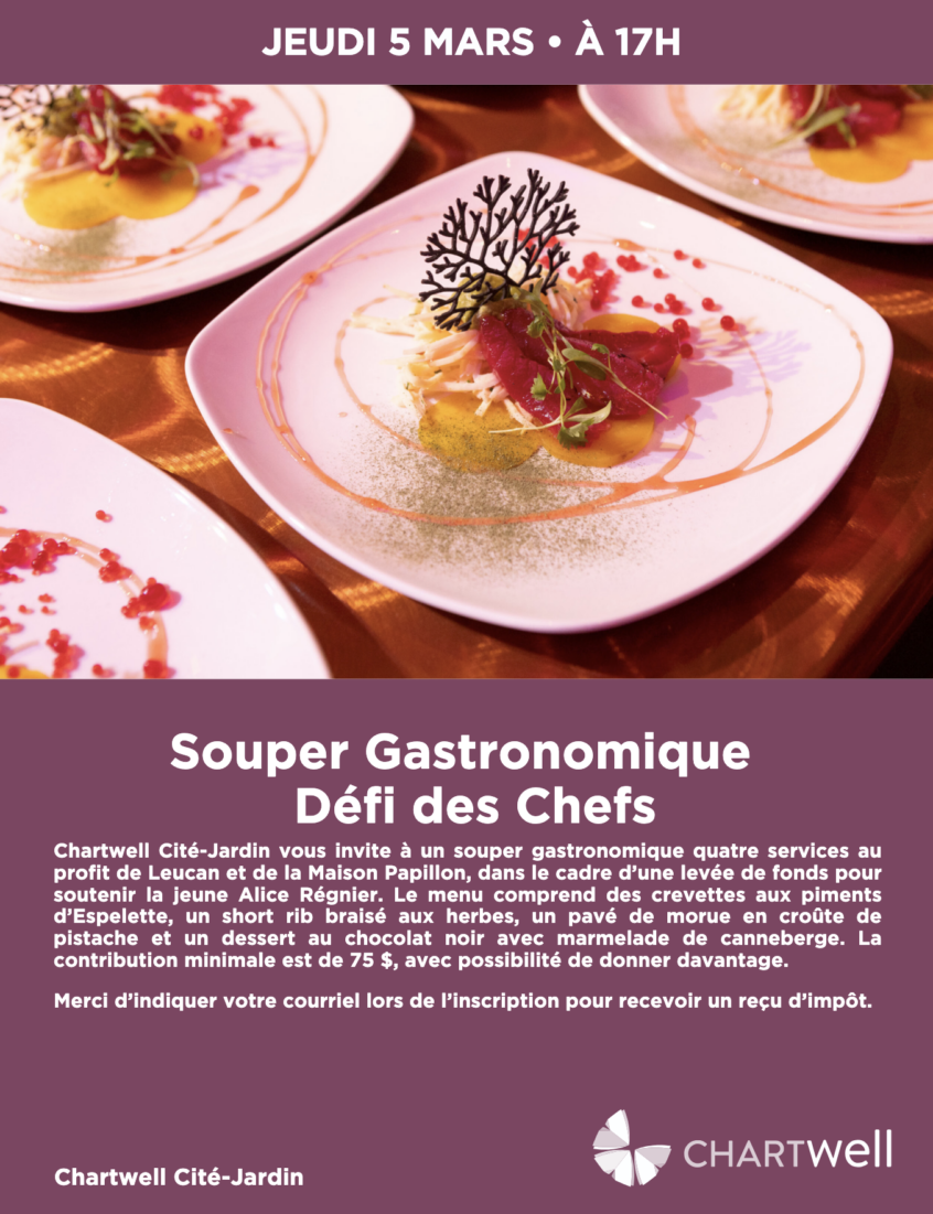 Défi des chefs 2026 centrelimbour2026-02-23ActivitésPublier un commentaire Veuillez vous inscrire auprès de Karl Sigouin au 819-598-5269 Les places sont limitées! Au plaisir de vous voir.